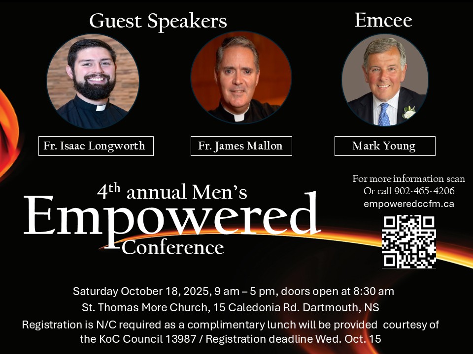Fr. Isaac Longworth CC - Father Isaac recently celebrated his 2 year anniversary to the priesthood. He is an Associate Pastor at Saint Benedict Parish in Halifax. His bio is also in our speaker's bio section..
